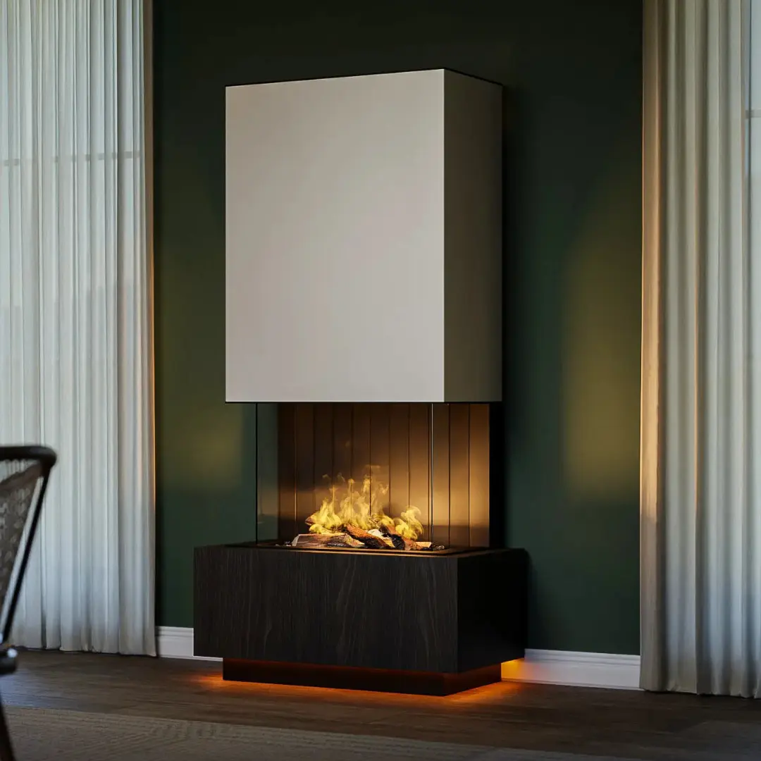 Das Geheimnis dieser Technik liegt in der Illusion: Fein vernebeltes Wasser wird durch Luftströme bewegt und von warmem LED-Licht erleuchtet. So entstehen lebendige, tanzende Flammen, die kaum vom echten Feuer zu unterscheiden sind. Gleichzeitig verbessert die natürliche Luftbefeuchtung das Raumklima – ein spürbarer Unterschied, den man atmet.