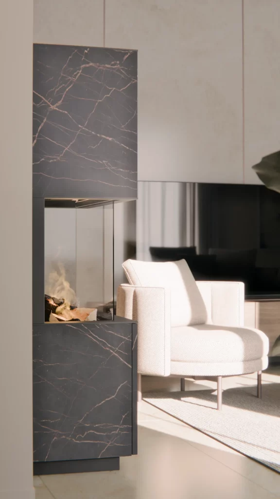 Elyn Ceramic setzt auf ein durchgängiges Keramik‑Design und bringt damit ein besonders elegantes, wohnliches Ambiente in Ihren Raum. Die hochwertige keramische Oberfläche macht den Kamin zu einem stilvollen Blickfang, der sich dezent und doch präsent in unterschiedliche Wohnstile einfügt.