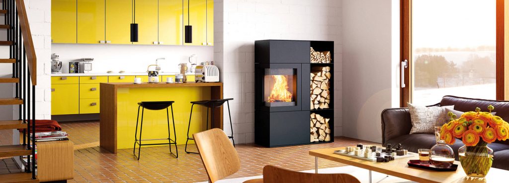 • Als Eckofen platzierbar, ohne sichtbare Anschlüsse